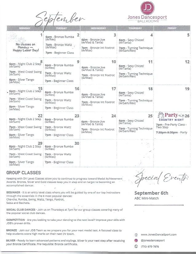 Jump Start - This entry level class focuses on basic steps and basic timing. Recommended for beginners, it offers the best starting place to learn the 8 most popular dances: cha-cha, rumba, swing, waltz, tango, foxtrot, salsa, and merengue.